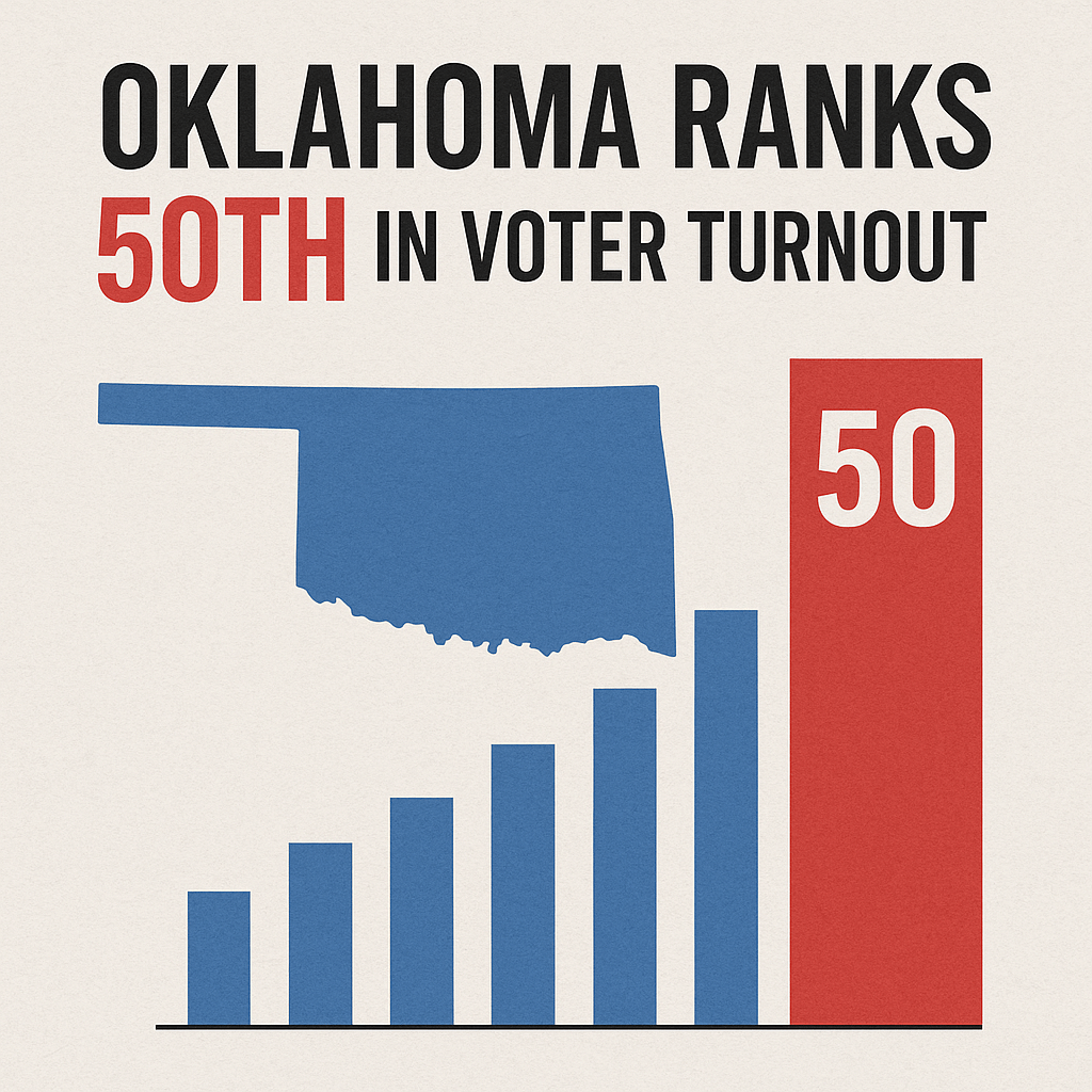 Oklahoma ranks dead last — 50th — in voter turnout. That’s not a coincidence. It’s the result of a system designed to make most voters irrelevant. How can anyone who believes in the Oklahoma Standard not be outraged by that? Our state was built on populist roots — a belief that the people’s voice should outweigh the grip of entrenched elites.